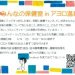 2022年3月11日 / 最終更新日時 : 2022年3月11日 sakamotoayoro お知らせ 恒例の健康相談イベント開催します。 毎度おなじみ須貝ちゃんが、3月19日(土) に来てくれます。気軽に相談してね。 たとえば・・・。for example・・・。 50才近くなってきたら、肌がカサつくんだよね・・・。とか・・・。 最近、疲れやすいんだよねー […]